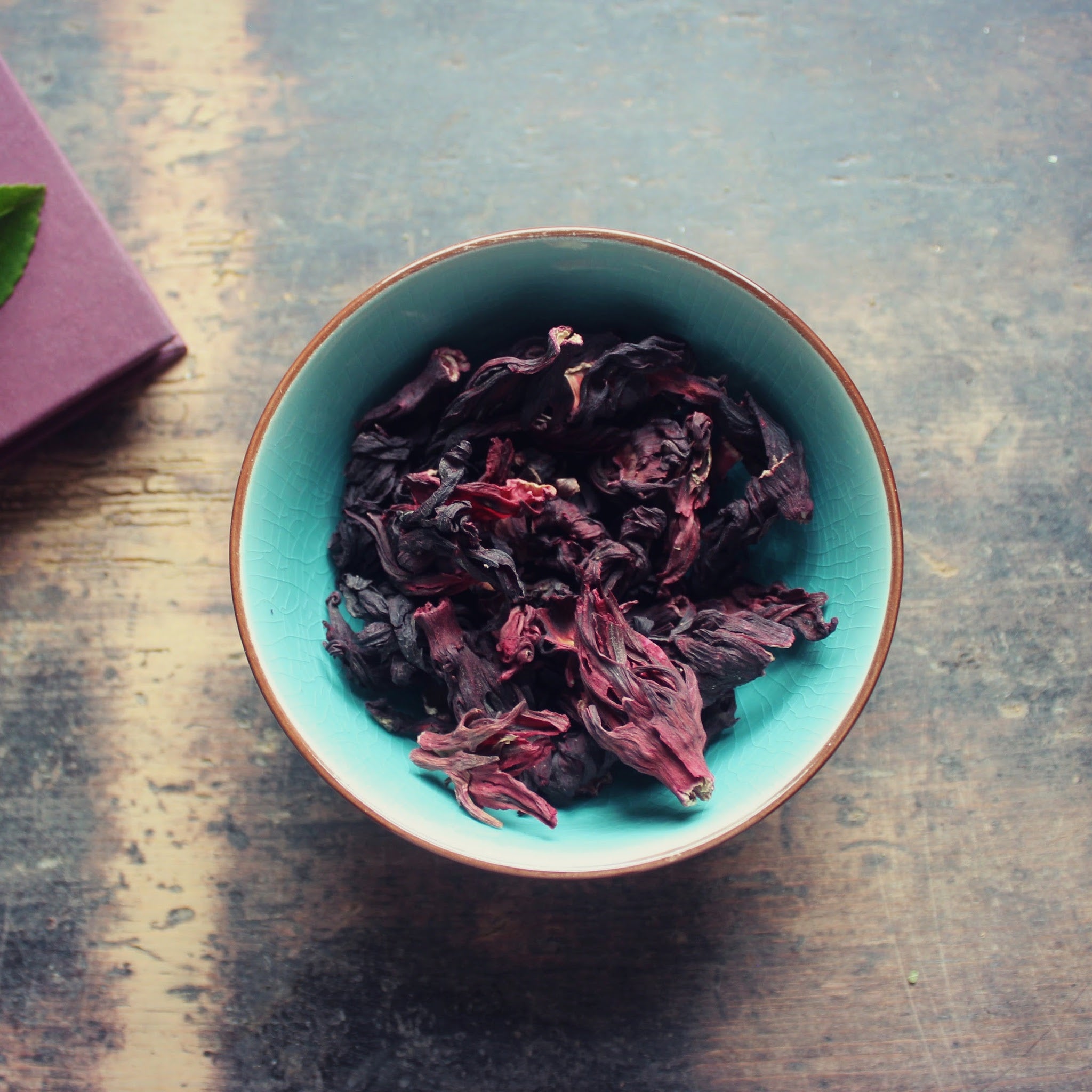 The hibiscus, as connoisseurs know, consists of the hibiscus' calyx and external calyx. They are harvested during the time of the fruits and then dried. The inner calyx is 3 cm long and up to the middle it is ball-like. Above there are five upward bent tips. The external calyx consists of 10 small, slim leaves that are strongly "anchored" with the calyx basis. After its flowering time the fleshy and slightly crumbly calyxes take on their typical red colour. The main countries of cultivation of the hibiscus, also known as mallow, are the Sudan, Egypt, China, Mexico and Thailand. The infusion of the hibiscus blossom can either be drunk pure or in form of a fruit tea blend and is thoroughly refreshing.
